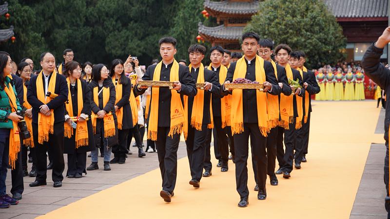 初獻(xiàn)禮環(huán)節(jié),41名兩岸學(xué)子敬獻(xiàn)書卷;亞獻(xiàn)禮環(huán)節(jié),20名兩岸各界人士代表上臺凈手上香,祈愿福澤盛世、國泰民安;終獻(xiàn)禮環(huán)節(jié),兩岸嘉賓向文昌帝君敬獻(xiàn)花籃。整個典禮莊嚴(yán)肅穆、精彩隆重,伴隨恢宏的《頌文昌》與祭祀樂舞,甲辰年文昌祭祀大典圓滿禮成。